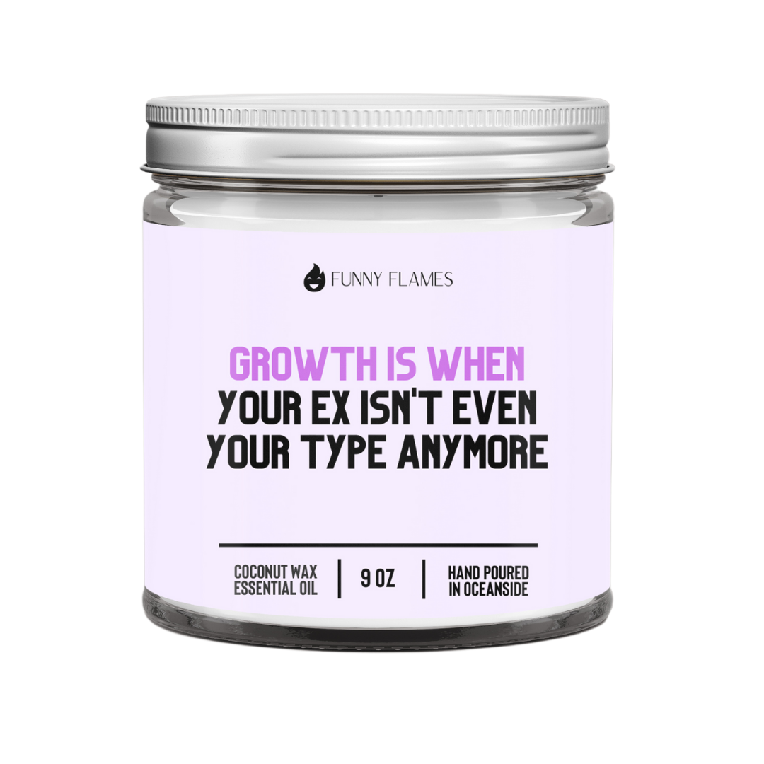 "Growth Is When Your Ex Isn't Even Your Type Anymore"! Made with a luxurious coconut apricot wax blend and scented with zesty Citrus, juicy Orange, refreshing Mint, and a hint of sweet Agave, this candle is the perfect way to celebrate moving on from your past flames.